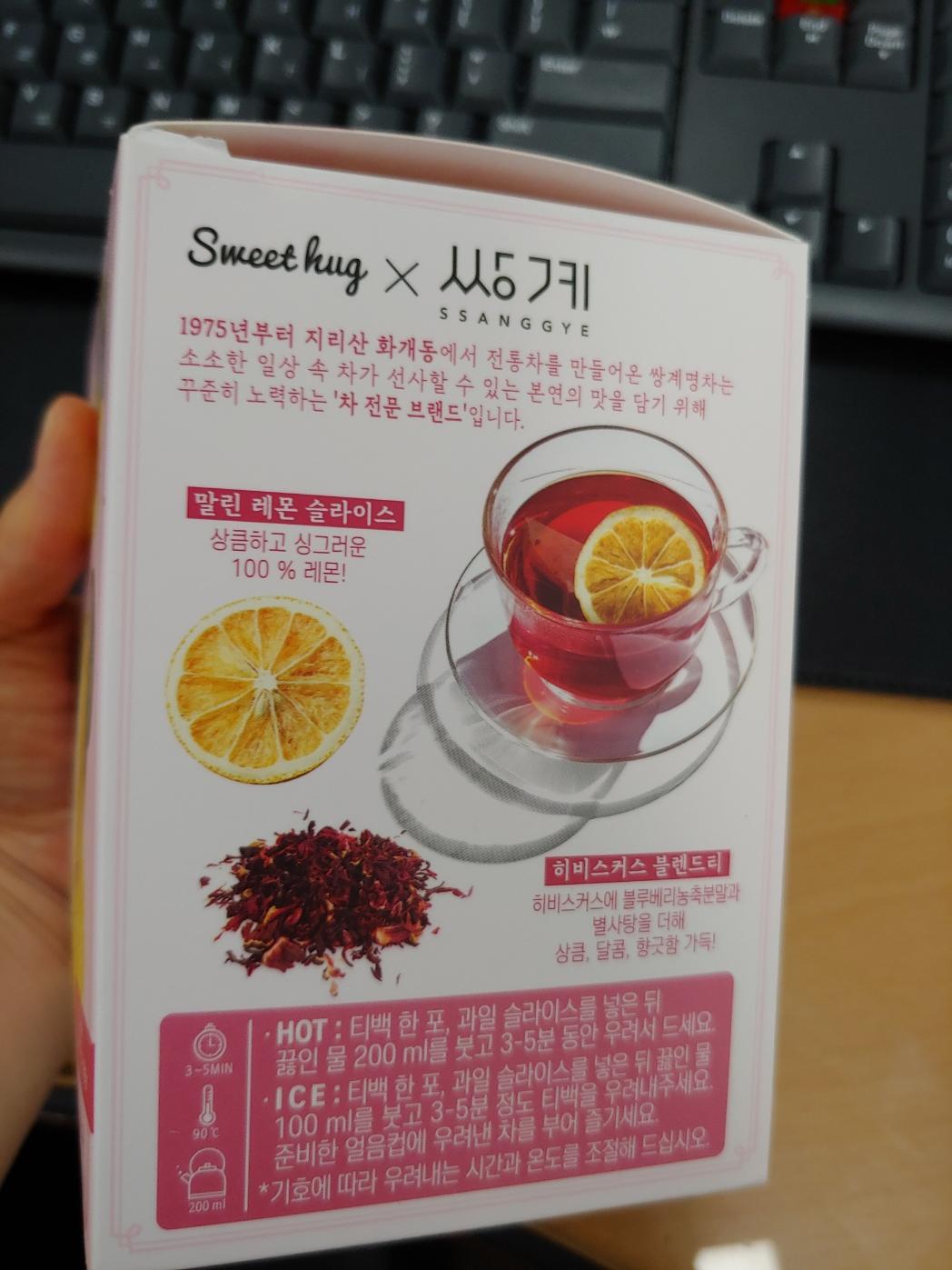 날씨가 많이 더워지니까 시원하게든 따듯하게든 계속 차를 마시게 돼요. 하루에도 집에 있는 거 몇 개를 돌려 마시나 모르겠어요. 처음 쟈뎅 아워티를 경험하고 나서 눈이 땡글해 졌는데 이번에 새로 구입한 상계명차 레몬히비스커스 과일 허그티도 정말 달콤 새콤하니 맛있더라고요. 쟈뎅 아워티와의 차이점은 쟈뎅 아워티의 경우는 블랙티와 건조과일의 결합이라면 쌍계명차 레몬히비스커스 과일 허그티 종류에는 홍차도 들어있지만 히비스커스에 블루베리 농축분말 등 여러 상큼 달콤한 향들이 더해져서 녹차로 유명한 쌍계의 또 다른 이미지를 갖게 되실 거예요.