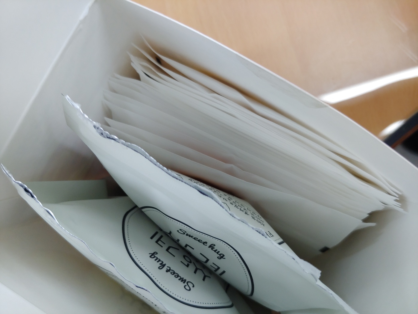 위의 사진은 제가 오렌지 루이보스와 히비스커스를 합쳐서 넣어 놨기 때문에 양이 10개 보다 많아 보이지만 실제 한 박스를 개봉하면 하얀 지퍼팩에 삼각티백이 10개 들어있고 과일칩이 개별로 한 장씩 포장되어 있어요. 저는 부피를 좀 줄일 요량으로 저렇게 넣어 놨어요. 쌍계명차 레몬히비스커스 과일 허그티 2박스를 구매했는데 하루에 두 잔 정도 마시면 금세 사라져요. 요즘 카페에서 마시는 커피나 다른 차들에 비하면 엄청 저렴한 편이지만 상자에서 과일칩 봉투가 하나씩 사라질 때면 마음이 조마조마하는건 왜 그럴까요...ㅠㅠ