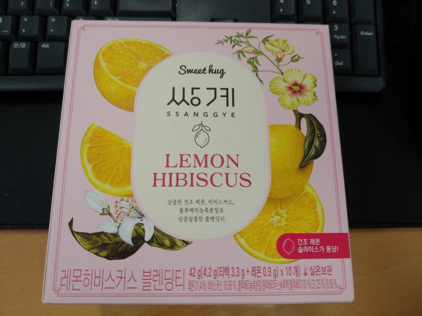 색깔이 정말 이쁘죠? 제목에도 있듯이 쌍계명차 레몬히비스커스 과일 허그티인데 제가 구입하고 한 박스에 두 종류의 차를 넣어놨다가 오렌지 봉투를 찢어버려 새로운 블렌딩이 되었어요. 하지만 맛은 good!!