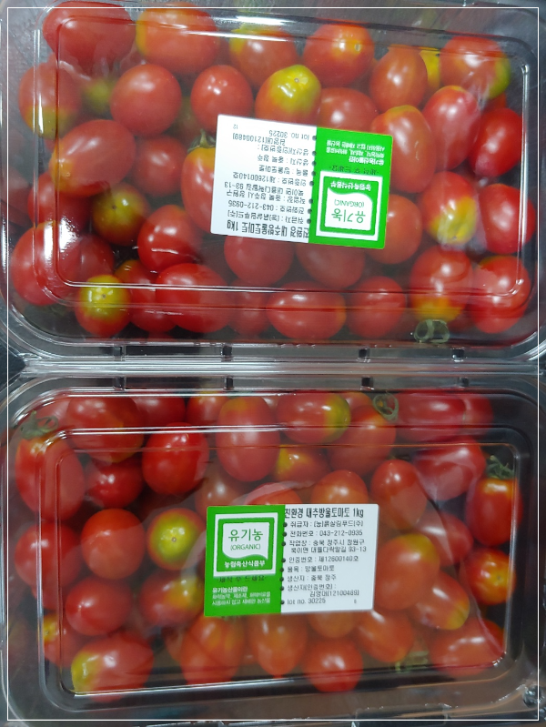 제가 오늘 배송받은 것은 유기농이네요. 친환경 대추방물토마토 1kg 상품을 4팩 구매했어요. 지난번에 구매했을 때는 무농약제품으로 왔었는데 유기농 딱지를 보니 괜히 땡잡은 느낌이에요. 소속된 작업장에 생산자가 다양하니까 수확시기마다 무농약, 유기농이 랜덤인 것 같아요. 유기농산물은 화약농약, 제초제, 화학비료를 사용하지 않고 재배한 농산물인 거 아시죠? 영양면에서 큰 차이는 없을지라도 먹을 때마다 좋은 토양에서 자란 것을 먹을 때면 괜히 건강해지는 느낌이에요. 여름 내내 마켓투유에서 떨어질만하면 주문해 먹는 친환경대추방울토마토가 올여름 내내 저의 수분보충제가 될 것 같네요.